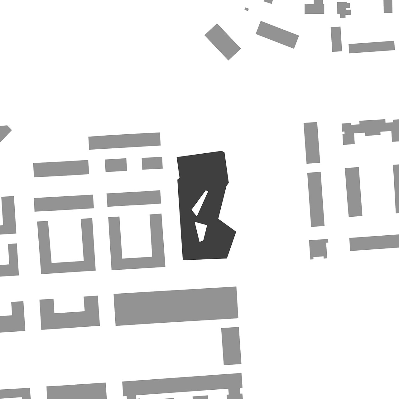 Die Baukörper von Grundschule, Kindertageseinrichtung und Sporthalle befreien sich von der orthogonalen Baustruktur der umgebenden Bebauung und fügen sich in freier Ausformung in ihre Umgebung ein. Die zum Gebäude hin geschützten Freianlagen öffnen sich zum östlich anschließenden Park und ergänzen Schule, Kindergarten und Sporthalle zu einer Gesamtanlage. Die Eingangsbereiche bilden als halböffentliche Räume Übergangsbereiche zwischen Innen und Außen. Durch die freie Geometrie der Baukörper verzahnen sich die Freiräume mit der Architektur und es entstehen intensive Wechselwirkungen von draußen und drinnen.